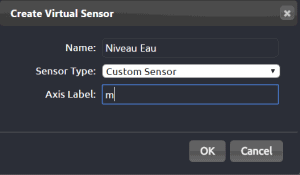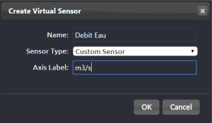 Puis créer deux sensors en cliquant sur Create Virtual Sensors :Le premier pour la hauteur d’eau et le deuxième pour le débit d’eau :